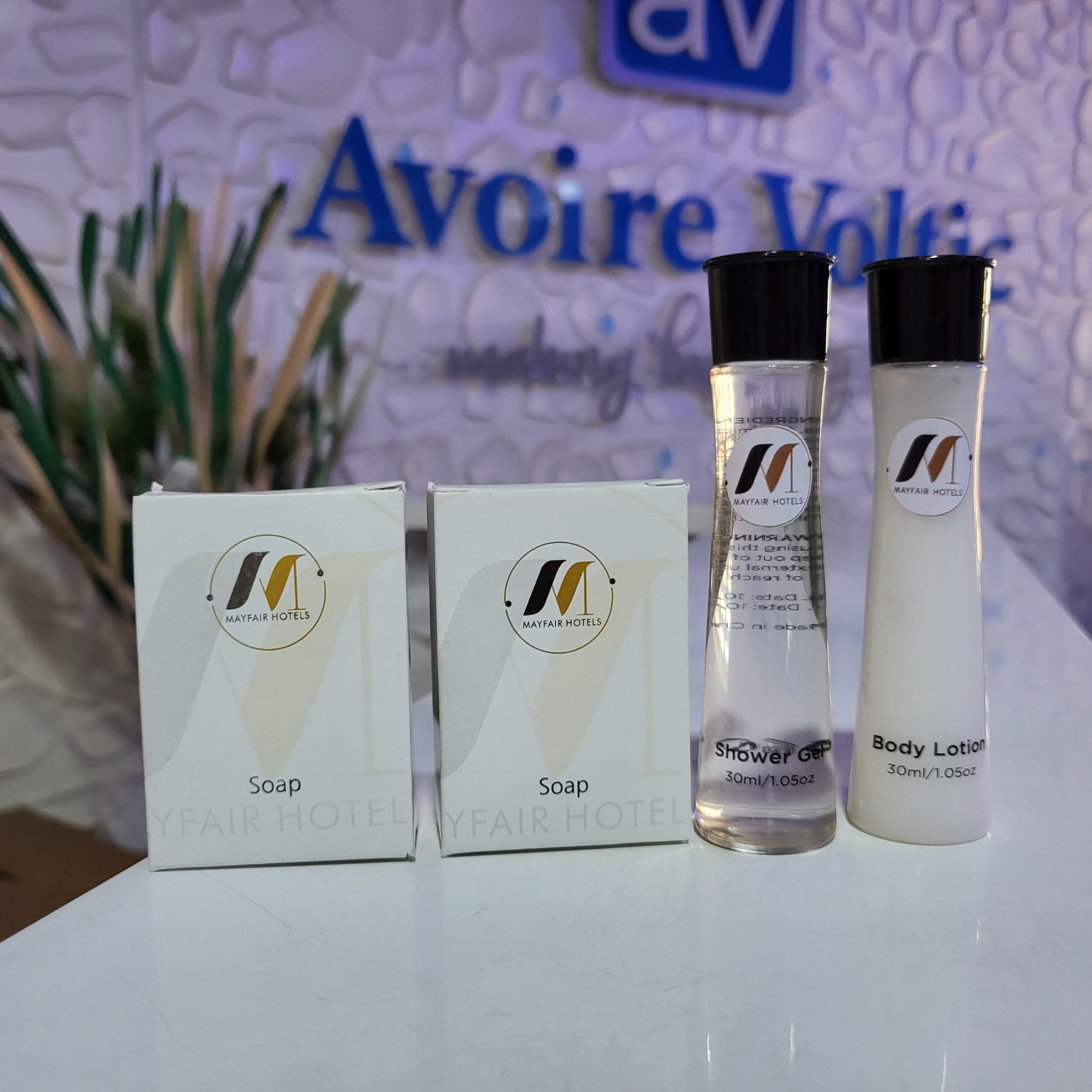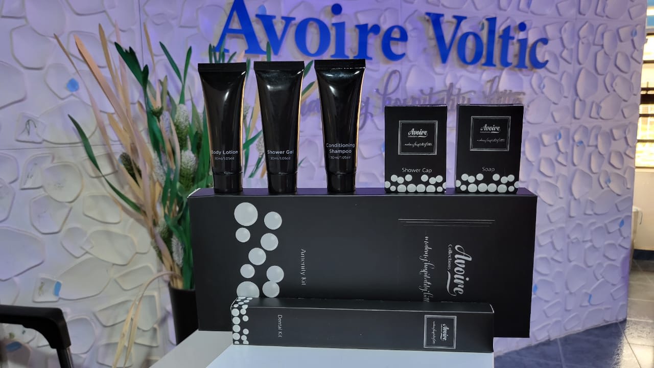 Avoire Voltic’s toiletry line combines eco-conscious design with luxury formulations. Biodegradable containers house gentle, gender-neutral body washes, shampoos, conditioners, and lotions—all infused with sophisticated fragrance blends. Each product is customizable in scent and branding, aligning seamlessly with your property’s identity.